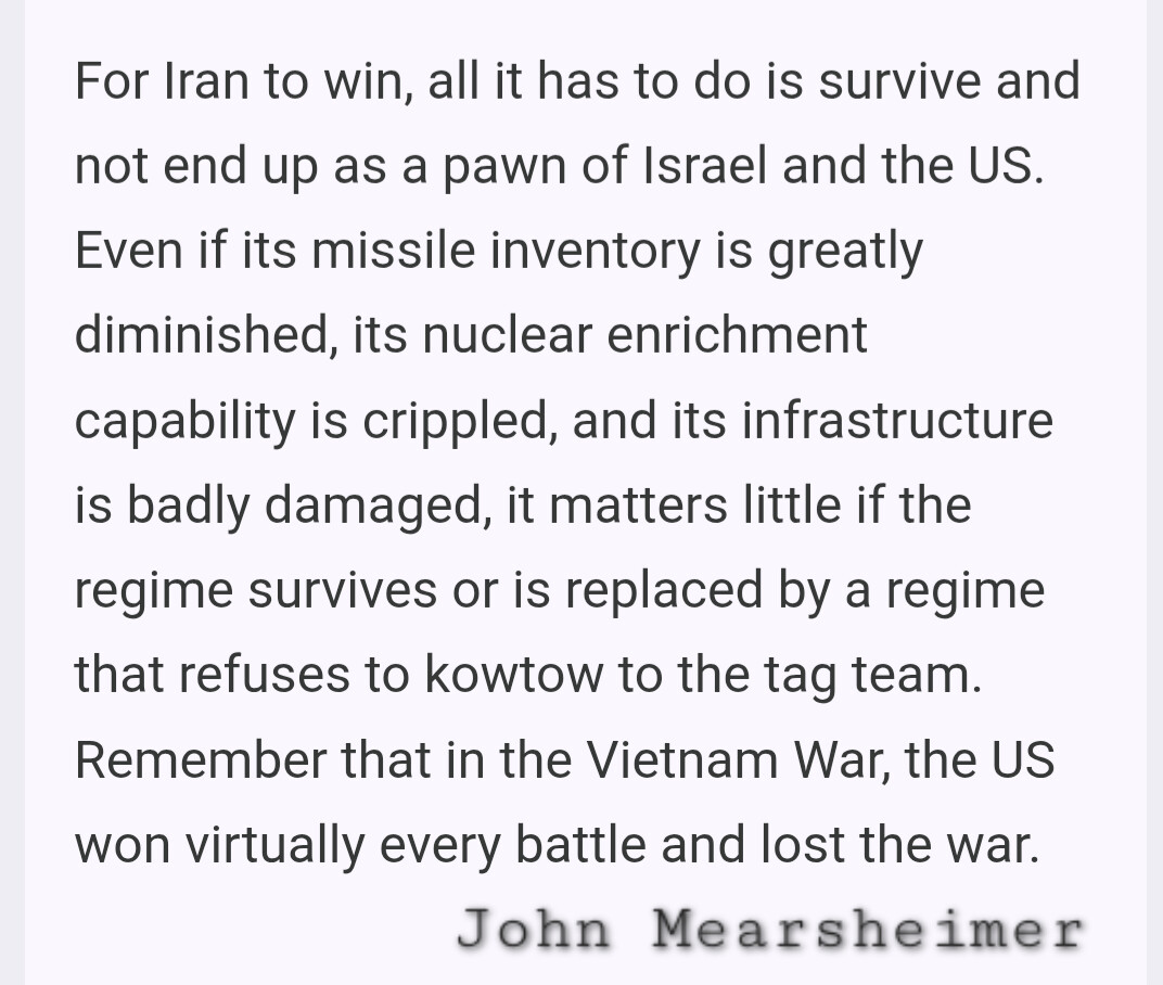 My view is that to cite the possibility of a nuclear exchange at this stage is only fearmongering. Neither Russia or China will go to war and risk a nuclear exchange with the USA over Iran. Russia has its hands full in Ukraine and China’s focus is on Taiwan. None of the other the nuclear countries are likely to get involved and so the risk of the nuclear war is very low. Also, without the funding from Iran the Houthis Hezbollah and Hamas are unlikely to last as a forceful enemy and so the straits of Hormuz will not become a bottle neck for shipping. Effectively the Iranian navy has been destroyed. I would expect this war to last only about 3 to 4 weeks. It will result in regime change is another matter.