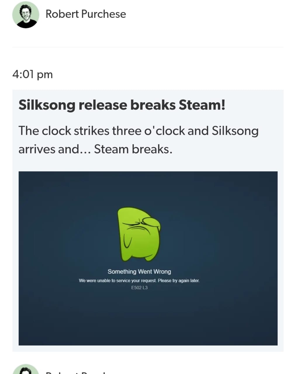 Something quite significant happened on Thursday, in my opinion. An independent game developed by a core team of three, with a conspicuous lack of PR, NO review copies, NO preorder option and a gestation period of 7 years, crashed all 4 major digital storefronts due to concurrent demand. Steam alone showed 500,000+ concurrent players within 3 hours of release (while the US was still at work). It did this because the team had earned trust and proven substance.