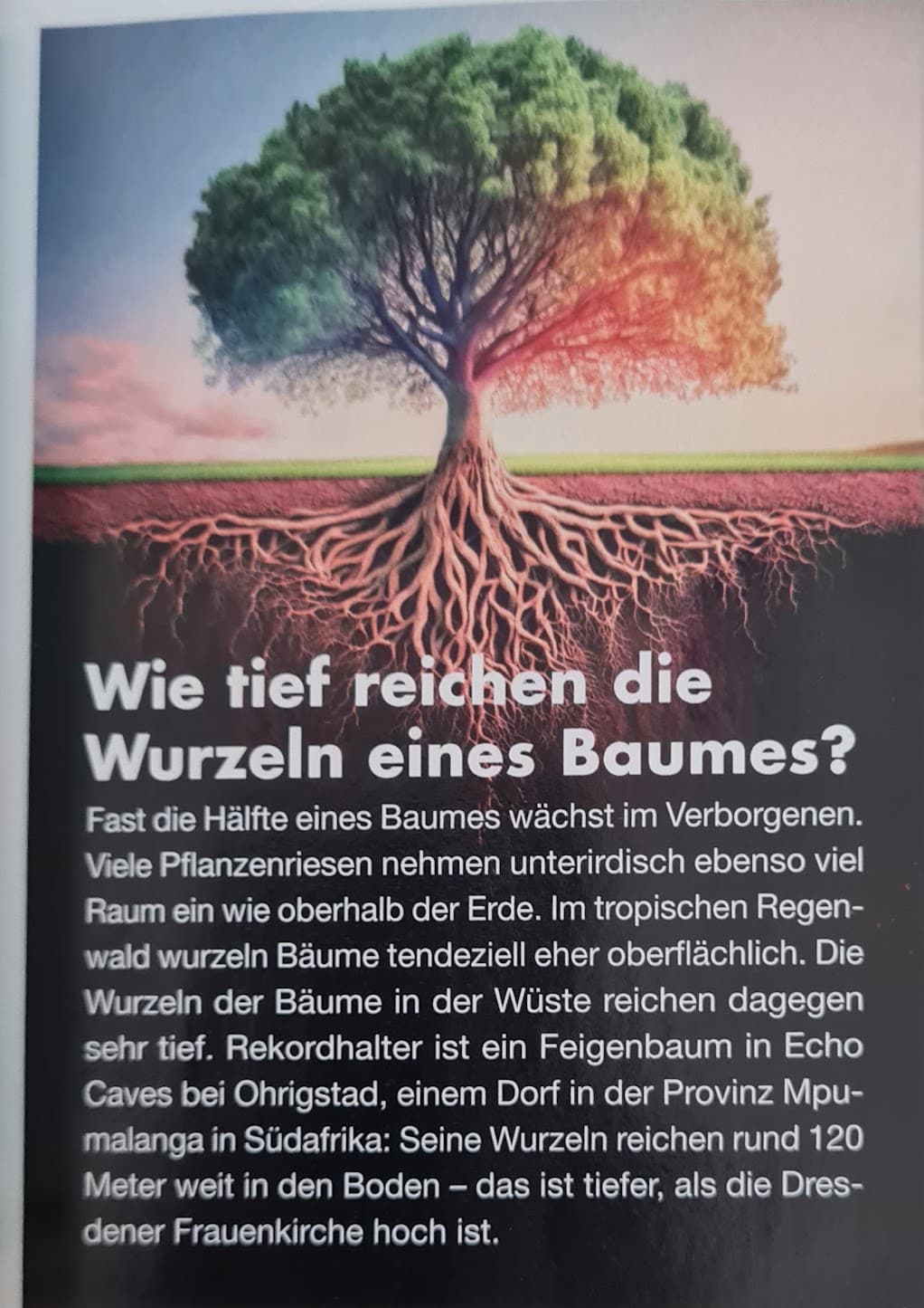 Thus, I thought it appropriate to share this fact with you which I stumbled reading the ‘Welt Der Wunder Kompakt’ magazine this week in Germany, where they inform the reader’s that a tree standing in South Africa, Ohrigstad, close to the Echo Caves, holds the Guinness world record for holding the deepest deepest root structure of a 120m.