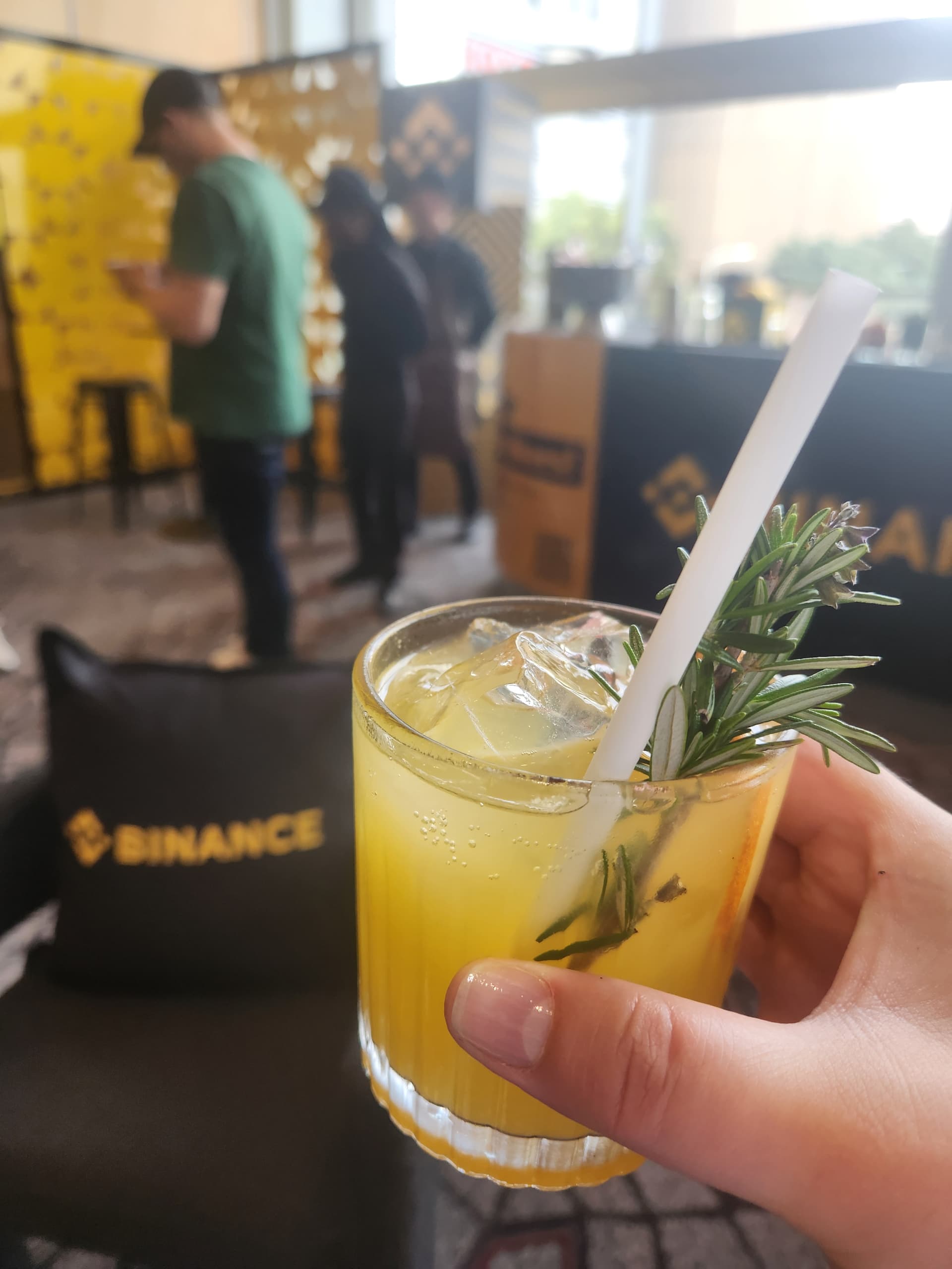 The Binance team is offering coffee and these breakfast mocktails, which is going in the Gathering refreshment hall of fame for me.